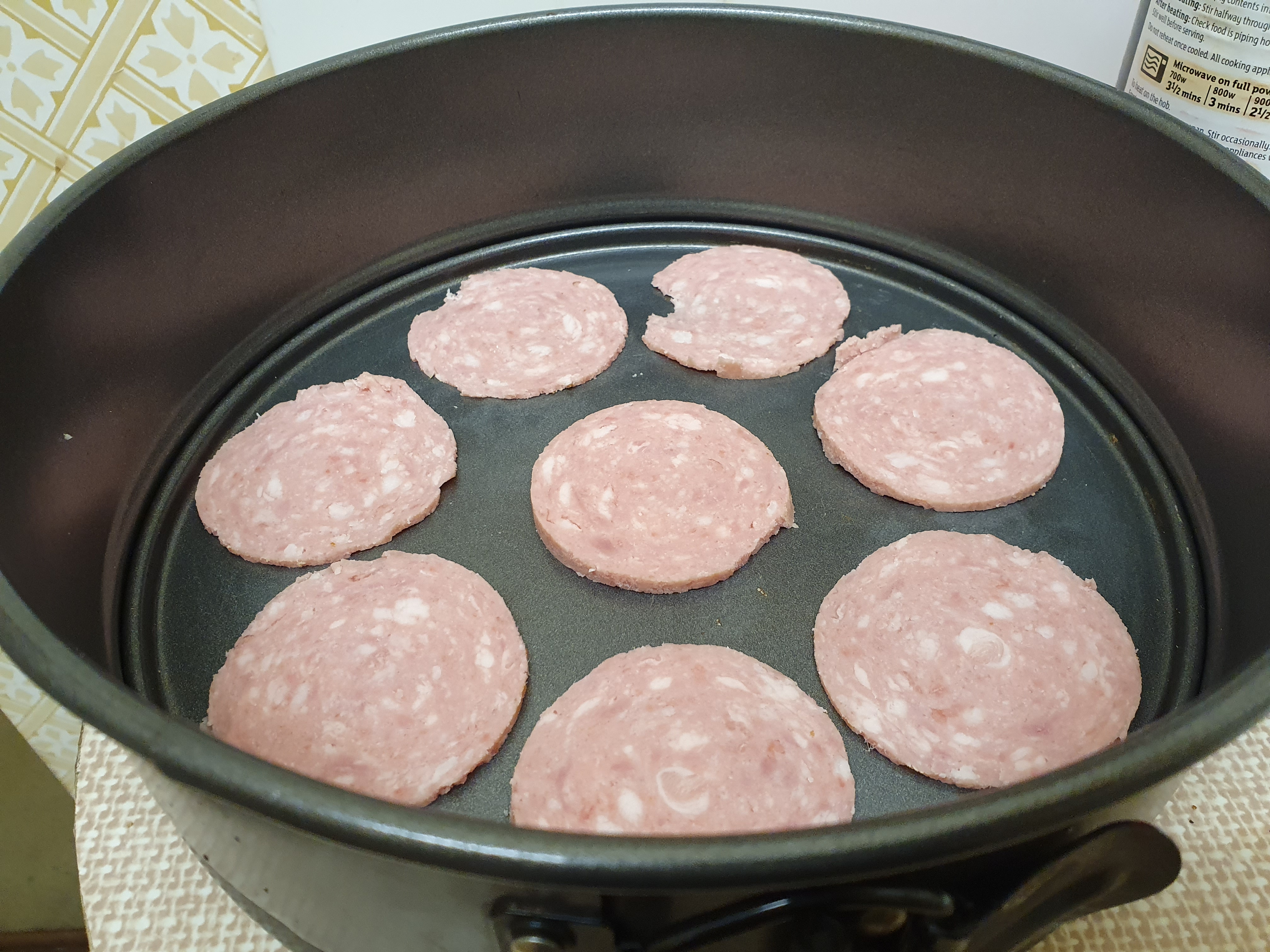 Hmm. Looked like a few of the pieces of sausage must have stuck to the bottom of the tin - but that was easily rectified.